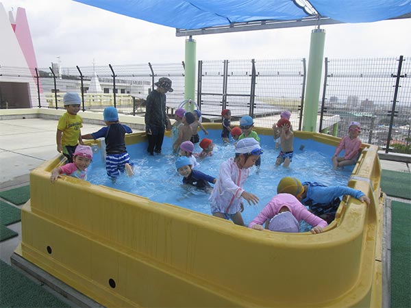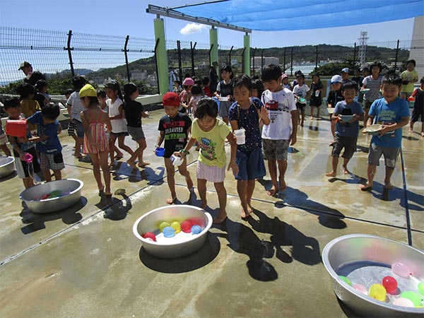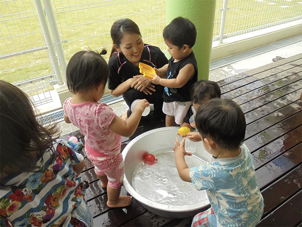 園庭、グラウンドであそぶ雨天は室内順次降園